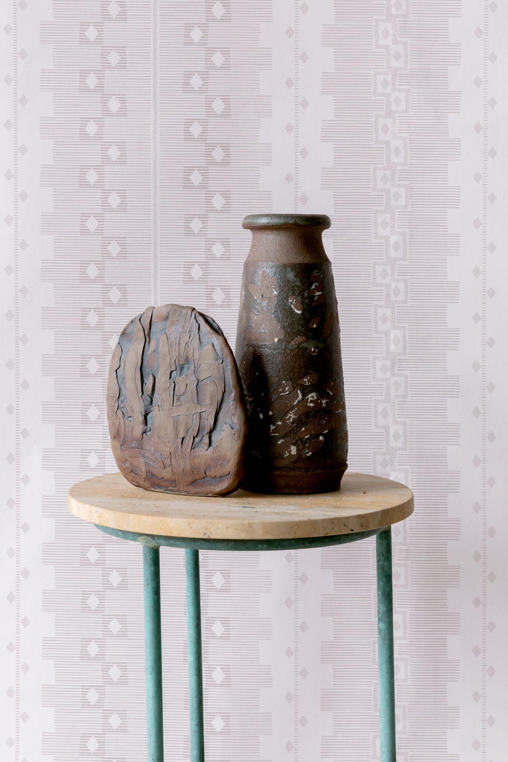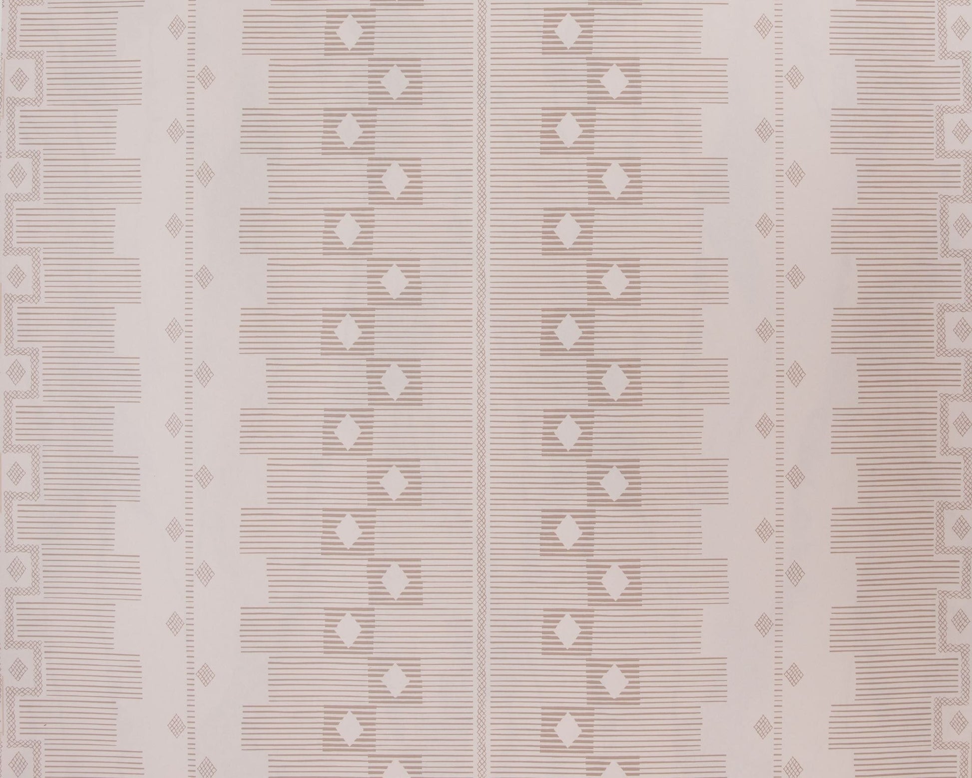 CUSCO travels across time and place, charting a course from ancient Inca textiles and Greek keys to the modern day painting of Cuban-American artist Carmen Herrera. Positive and negative space bring one another into balance, creating a series of geometric stripes. Printed in the softest blush cream with off brown design detail.