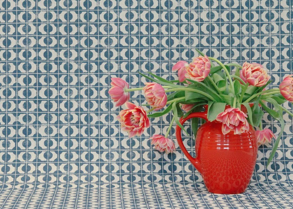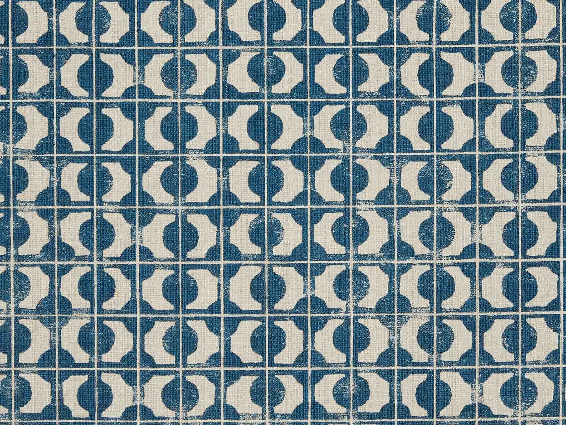 SETO is a series of intersections. East meets west, north meets south, ancient meets modern. Named for the inland sea that connects the islands of Japan, SETO both links lands together and creates vast distances. Hand-screened in deep indigo on Belgian linen, the hand-blocked grid holds open and opaque forms in balance.