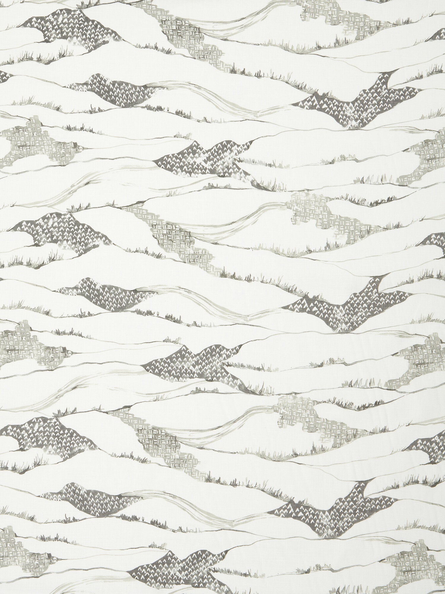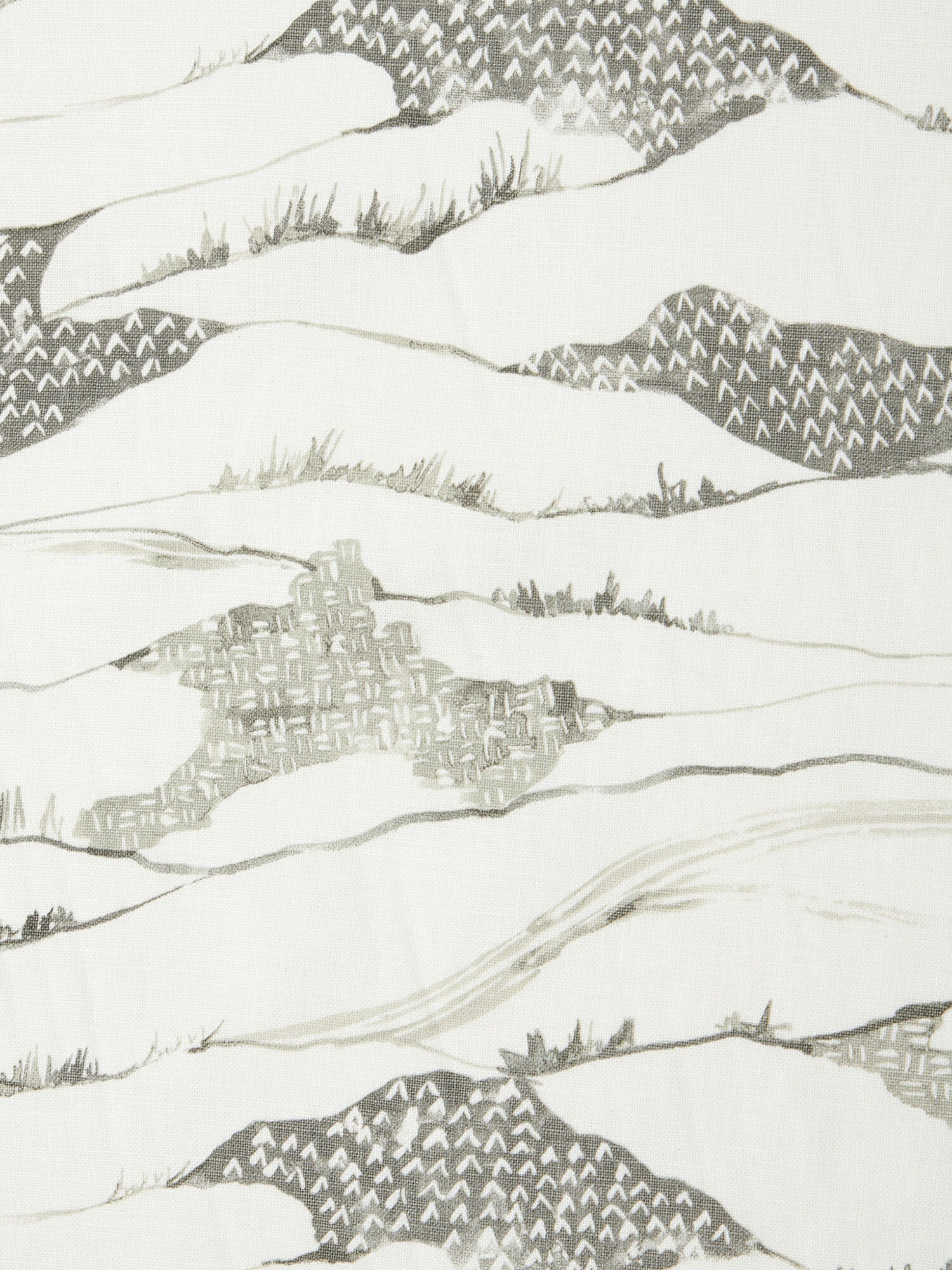 1920s Nigerian paintings and 17th-century Japanese landscapes sparked the idea for this modern toile. In a traditional Toile de Jouy, pastoral scenes are printed in a single color against a light ground. In our interpretation, layered colors and free flowing lines shape the land above and below ground, bringing together two planes โ the visible world and the one that runs through all we cannot see. Printed in shades of charcoal on oyster white Belgian linen.